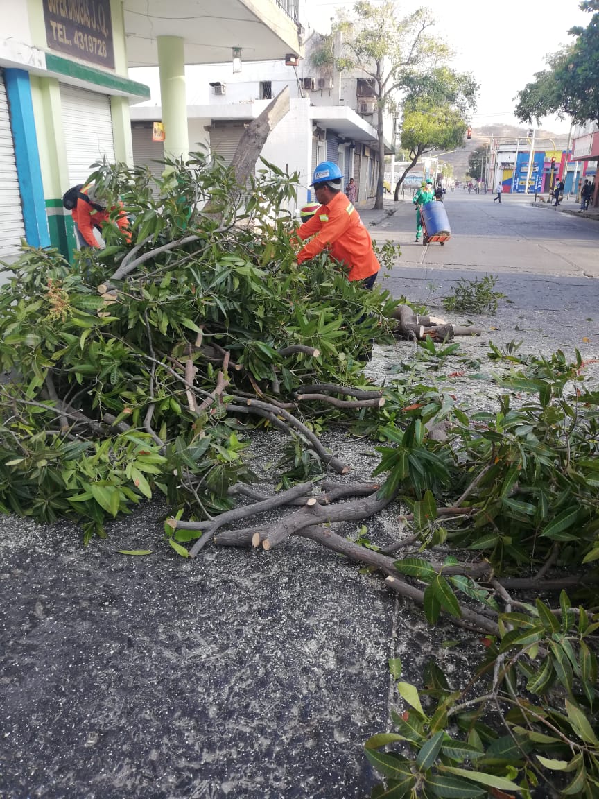 Atendiendo el llamado de la comunidad del Centro Histórico, en la carrera quinta con calle 10, la Empresa de Servicios Públicos del Distrito de Santa Marta, (Essmar) y el equipo de Actividades Complementarias del Servicio de Aseo de la Empresa, realizó la poda de un árbol que por las fuertes brisas que atraviesa la ciudad ocasionaba peligro para los transeúntes.
